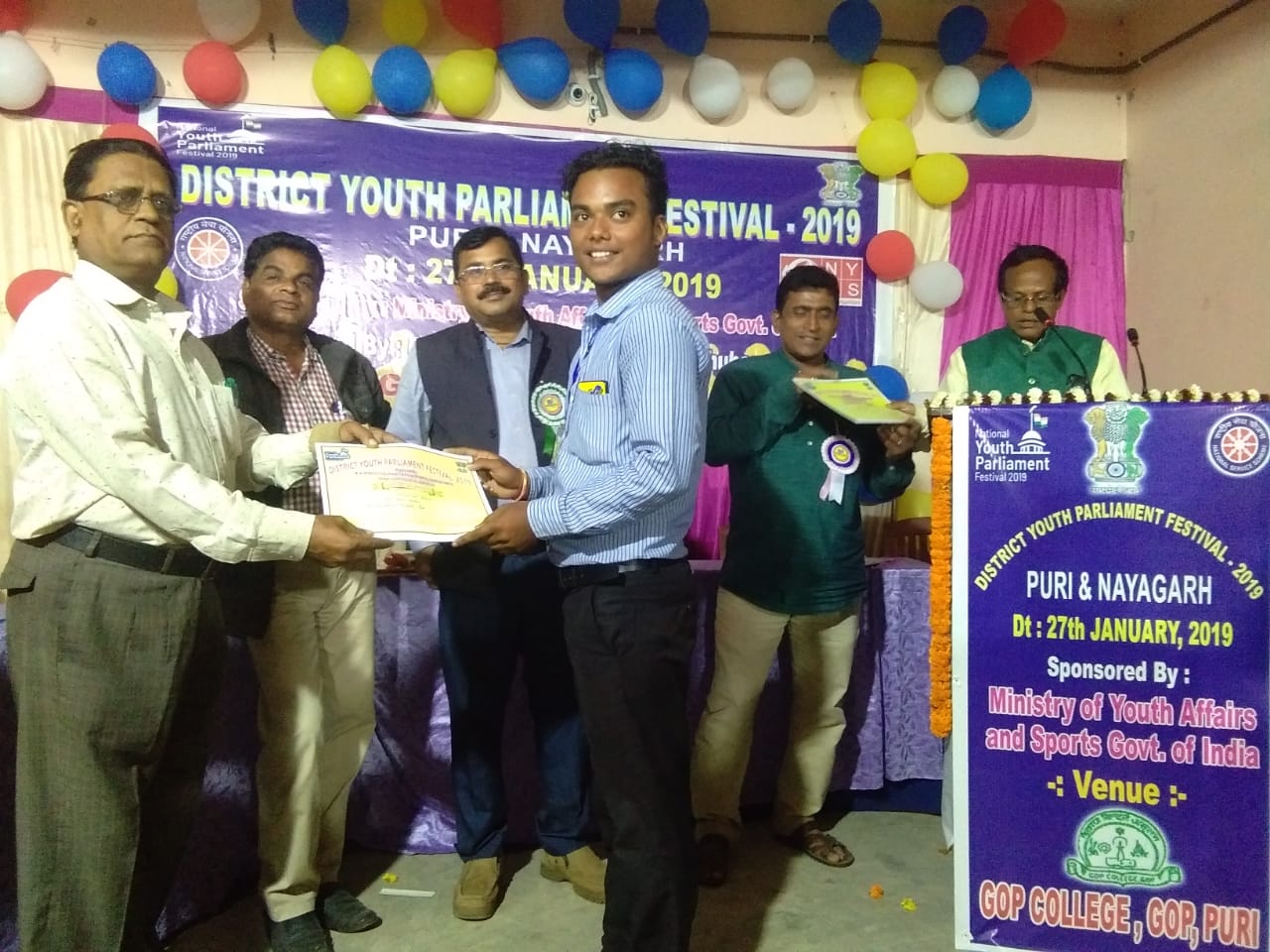 Students getting certificate at GOP college, gop in the occasion of district youth parliament programme (1)