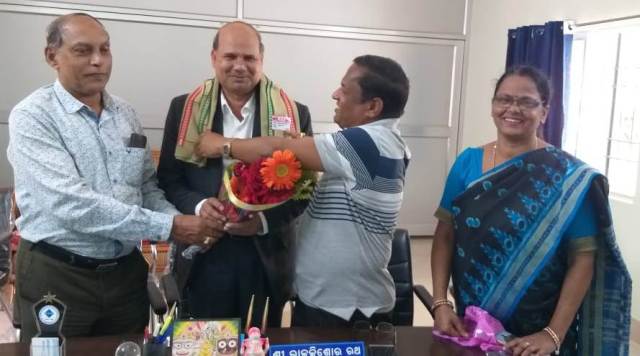 4.Prof.Byomkesh Tripathy was felicitated by the Principal and Administrative Officer.