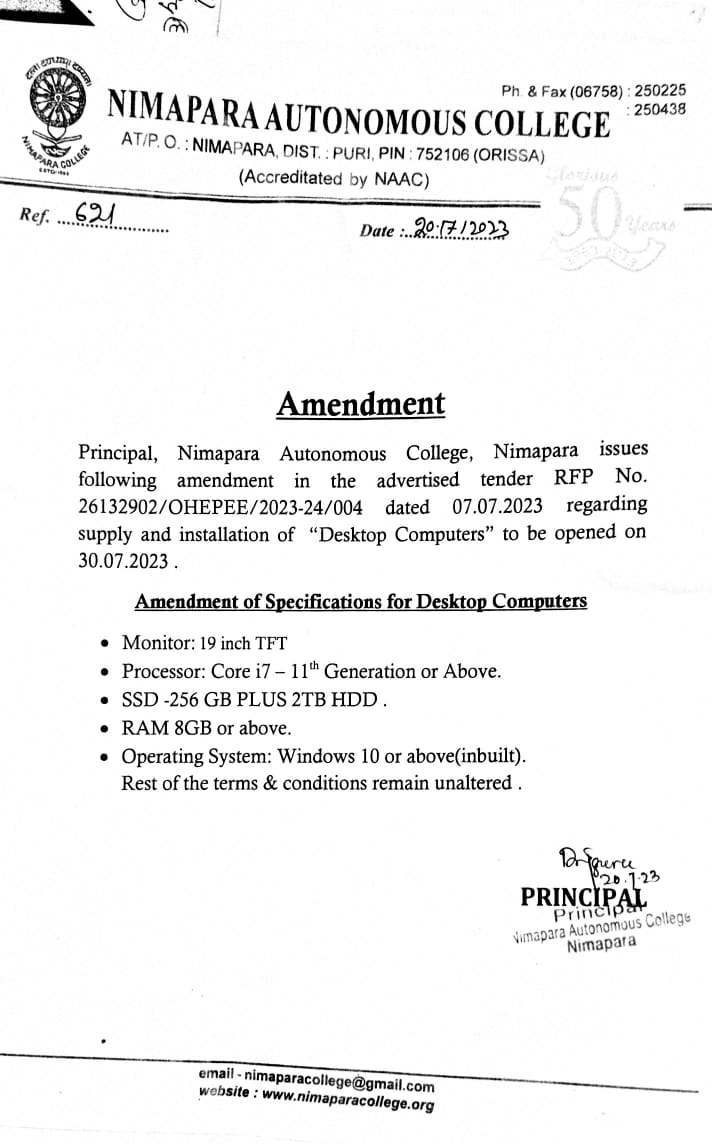Established in 1963, Nimapara College has already covered 50 glorious years, moulding the minds of students from Konark in the East to Pipili in the west from Astarang in the North to Puri in the South. Accredited B+ by NAAC in 2005 and conferred with Autonomous status in 2010, Established in 1963, Nimapara College has already covered 50 glorious years.
